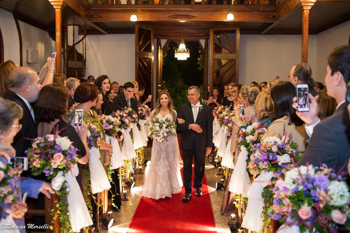 noiva entra na igreja com seu pai