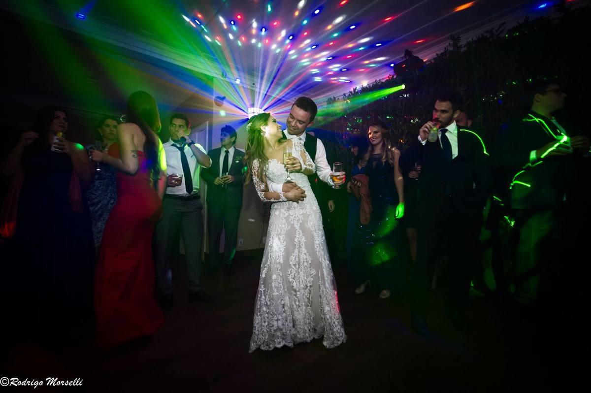 animação total na primeira dança dos noivos na casa de festas Quinta do Chapecó no RJ