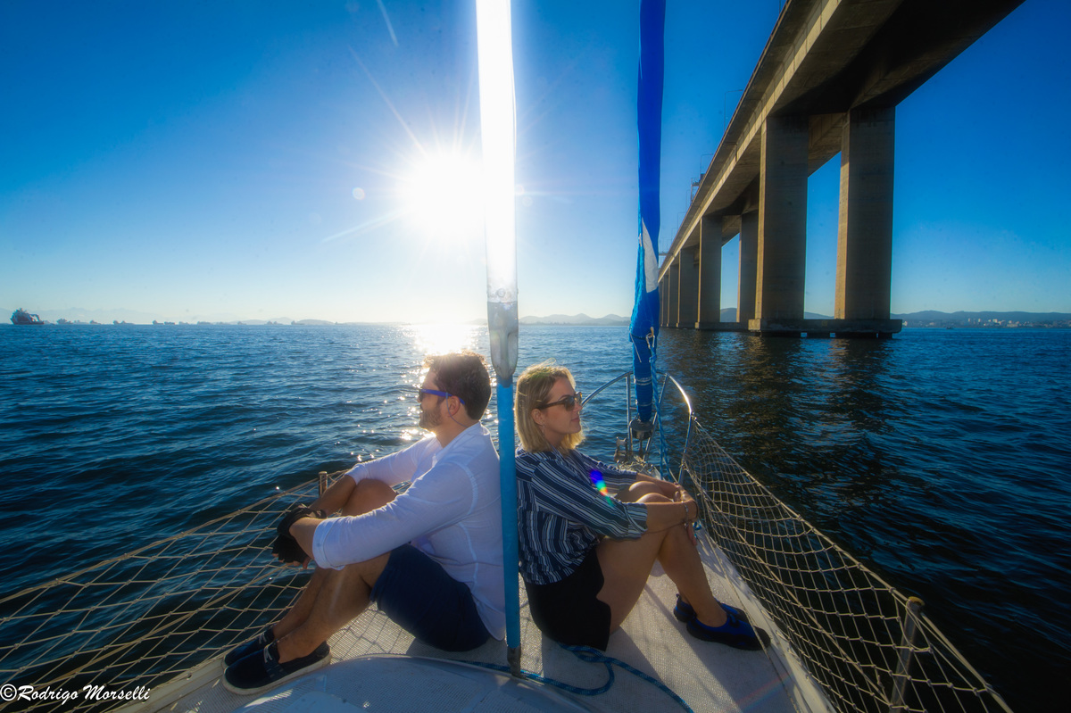Uma experiência sem igual acordar as 3h da manhã pra velejar na Baía de Guanabara! Zarpamos pro nosso ensaio Pre-Wedding as 4:30 da manhã de um lindo domingo de Sol no Rio de Janeiro, num veleiro! As fotos ficaram incríveis! Tive a oportunidade de passar debaixo da ponte Rio-Niterói! E acreditem, lá tem muito eco, rsrs...